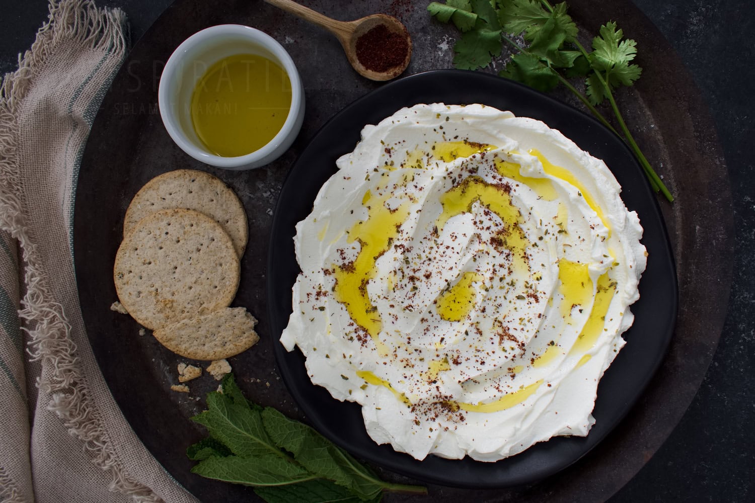 Labneh is een dip van gekruide yoghurt. De yoghurt laat je voor dit recept een nachtje uitlekken, zodat het een mooie dikke substantie wordt. Dit meng je dan met een beetje knoflook, citroensap en eventueel verse kruiden. Een snufje sumak en een drizzle olijfolie mogen niet ontbreken. Een heerlijke dip voor brood, crackertjes en groenten. Je kunt labneh ook heel goed maken met bijvoorbeeld sojayoghurt. Zo maak je er heel makkelijk een vegan labneh van.