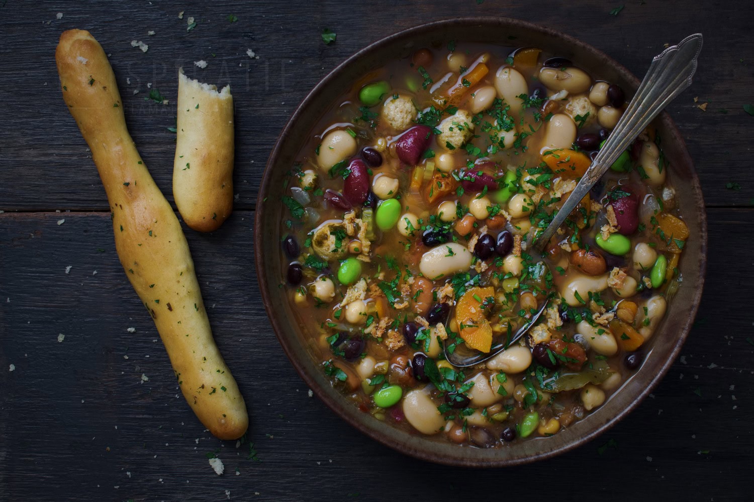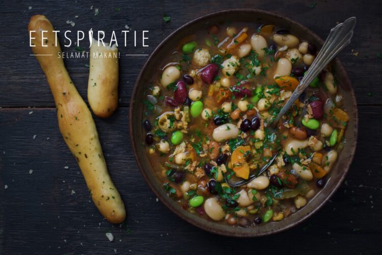 Bonensoep met 6 soorten bonen – voedzaam en eiwitrijk. Dit recept zal misschien niet bij iedereen favoriet zijn. Je moet wel een beetje een bonenliefhebber zijn én gewend zijn aan het eten van peulvruchten. Deze soep bevat maar liefst 6 verschillende soorten bonen en daarnaast ook nog linzen en spliterwten. Ik kwam namelijk online de ’16 bean mix’ tegen en was hier helemaal door gefascineerd. Deze mix is erg populair en geliefd in Amerika en – omdat het in Nederland niet verkrijgbaar is – besloot ik mijn eigen mix samen te stellen.
