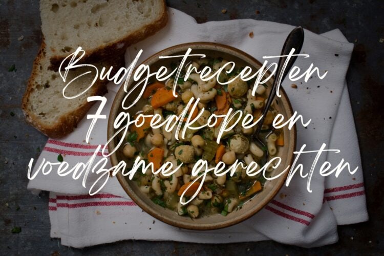 Budgetrecepten – 7 goedkope en voedzame gerechten. Makkelijk te maken, geen lange ingrediëntenlijsten en te combineren met producten uit je voorraadkast. Elke dag lekker eten zonder dat je honderden euro’s uit hoeft te geven aan boodschappen.
