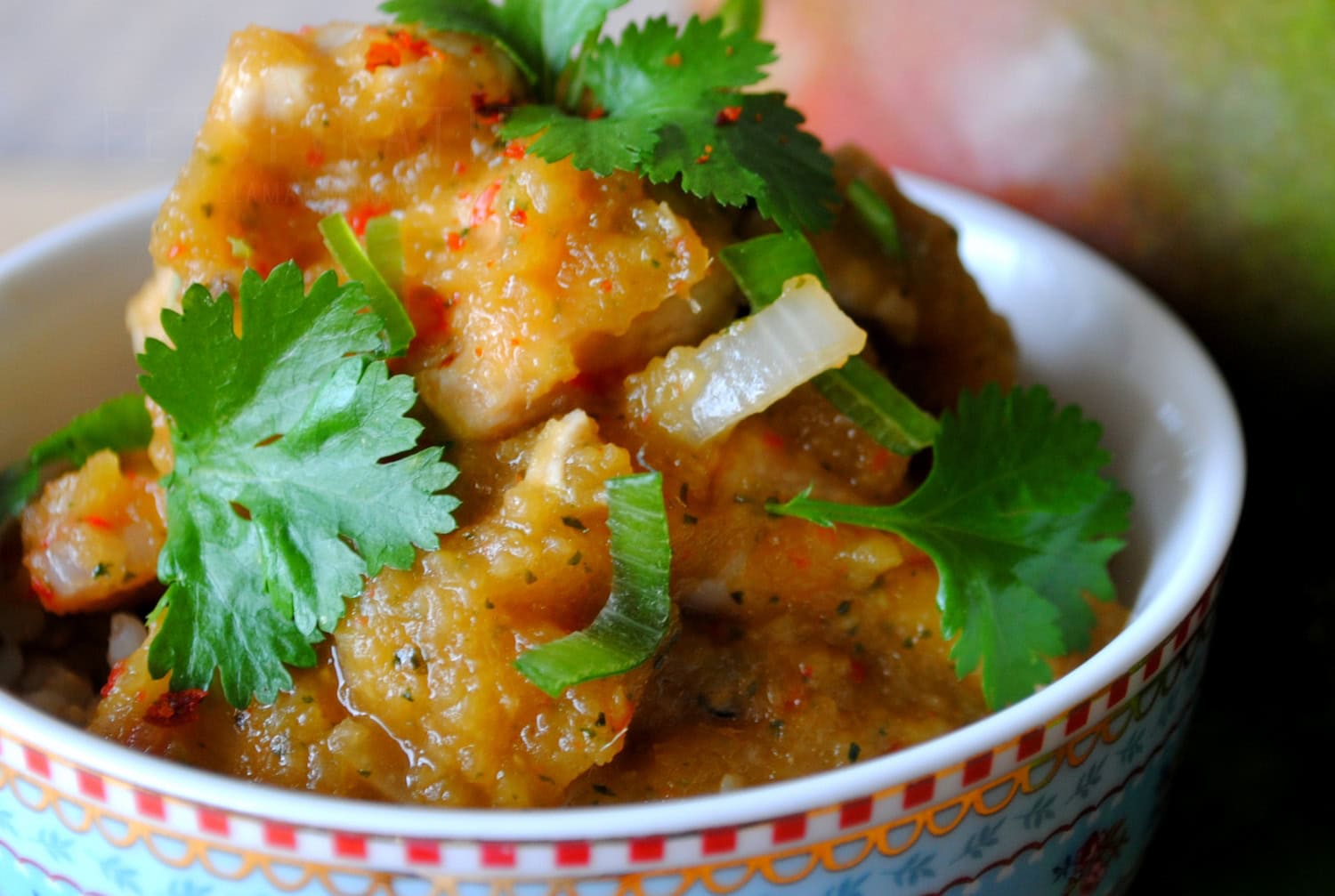 minutenKip in een zoete mangosaus met heerlijke Aziatische smaken. Bereid in 40 minuten in een pan of in de slowcooker 3 tot 4 uur low en slow. Serveer met rijst en groente.