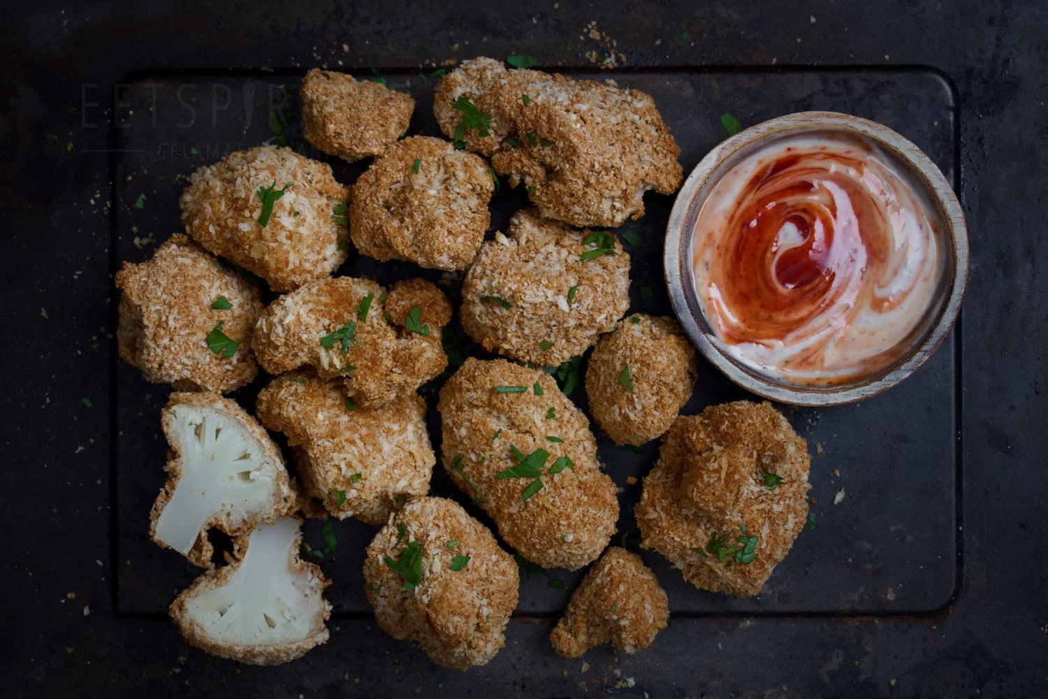 Crispy bloemkool bites, bloemkool nuggets of bloemkool ‘wings’ zijn allemaal namen voor dit gerechtje.