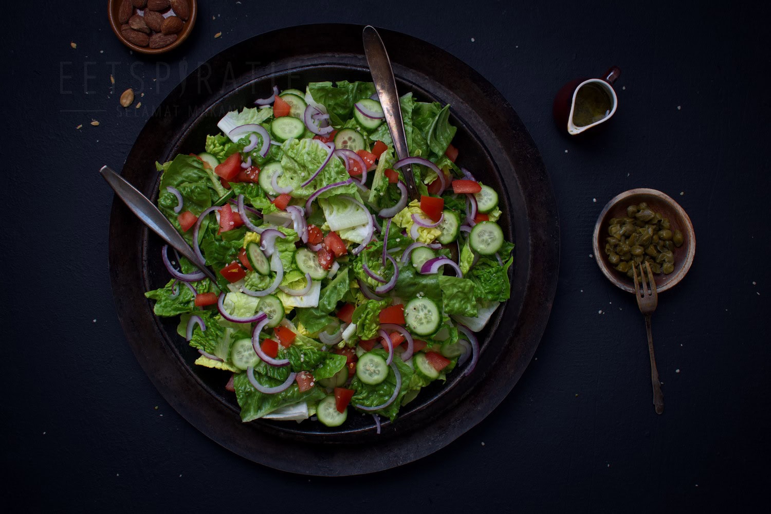 Salade – een basisrecept dat bij elke maaltijd past. In mijn recepten verwijs ik vaak naar een salade als bijgerecht. Maar hoe maak je nu een simpele salade die je ‘in principe’ óveral bij kunt serveren? In dit artikel leg ik uit hoe ik mijn salade maak en geef ik tips hoe je deze kunt uitbreiden en aanpassen naar je eigen smaak.
