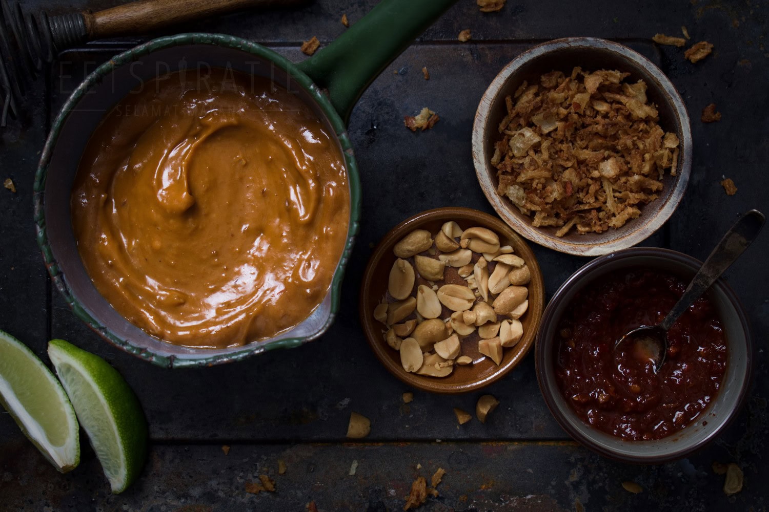 Snel satésaus recept met gebakken uitjes – klaar in 10 minuten. Soms heb je een idee en denk je: waarom heb ik dit niet eerder bedacht! Satésaus en gebakken uitjes (bawang goreng) horen gewoon bij elkaar. Normaal gesproken strooi ik de uitjes op mijn sateetjes, zo blijven ze lekker plakken aan de satésaus. Nu dacht ik, waarom doe ik de uitjes niet in de saus? Het geeft naast een lekkere smaak ook een bite.