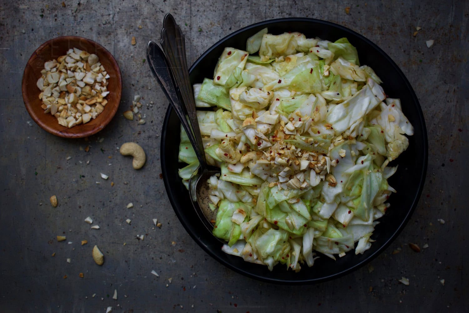 Spitskoolsalade – snel en makkelijk recept, klaar in 10 minuten! Deze snelle spitskoolsalade met een Oosterse twist is verslavend lekker. Knapperig, fris en je hebt weinig ingrediënten nodig. Een salade die bij verschillende gerechten past, maar ook lekker is op zichzelf. De dressing is eenvoudig is voor een lekkere crunch voeg ik geroosterde cashewnoten toe. De stukjes gebakken knoflook in deze salade zijn echte smaakbommetjes.