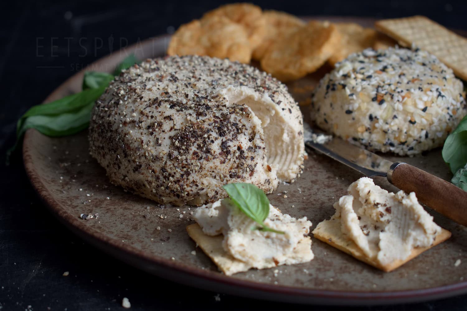 Deze ‘kaas’ kun je op verschillende manieren maken. Je mengt het in een blender of nutribullet tot een romige spread en bewaart dit in een bakje. Of je vormt er een rond kaasje van met behulp van een kaasdoek zodat je er puntjes uit kunt snijden zoals bij een ‘echt’ kaasje. Lekker voor bij de borrel en het ziet er mooi uit op tafel. Bestrooi het kaasje met kruiden of peper voor extra smaak en kleur. Om deze kaas een ‘kazige’ smaak te geven, gebruik je nutritional yeast oftewel edelgistvlokken. Ik schreef hier eerder een artikel over. Deze vlokken kun je kopen in de grotere supermarkten, online en in natuurvoedingswinkels.