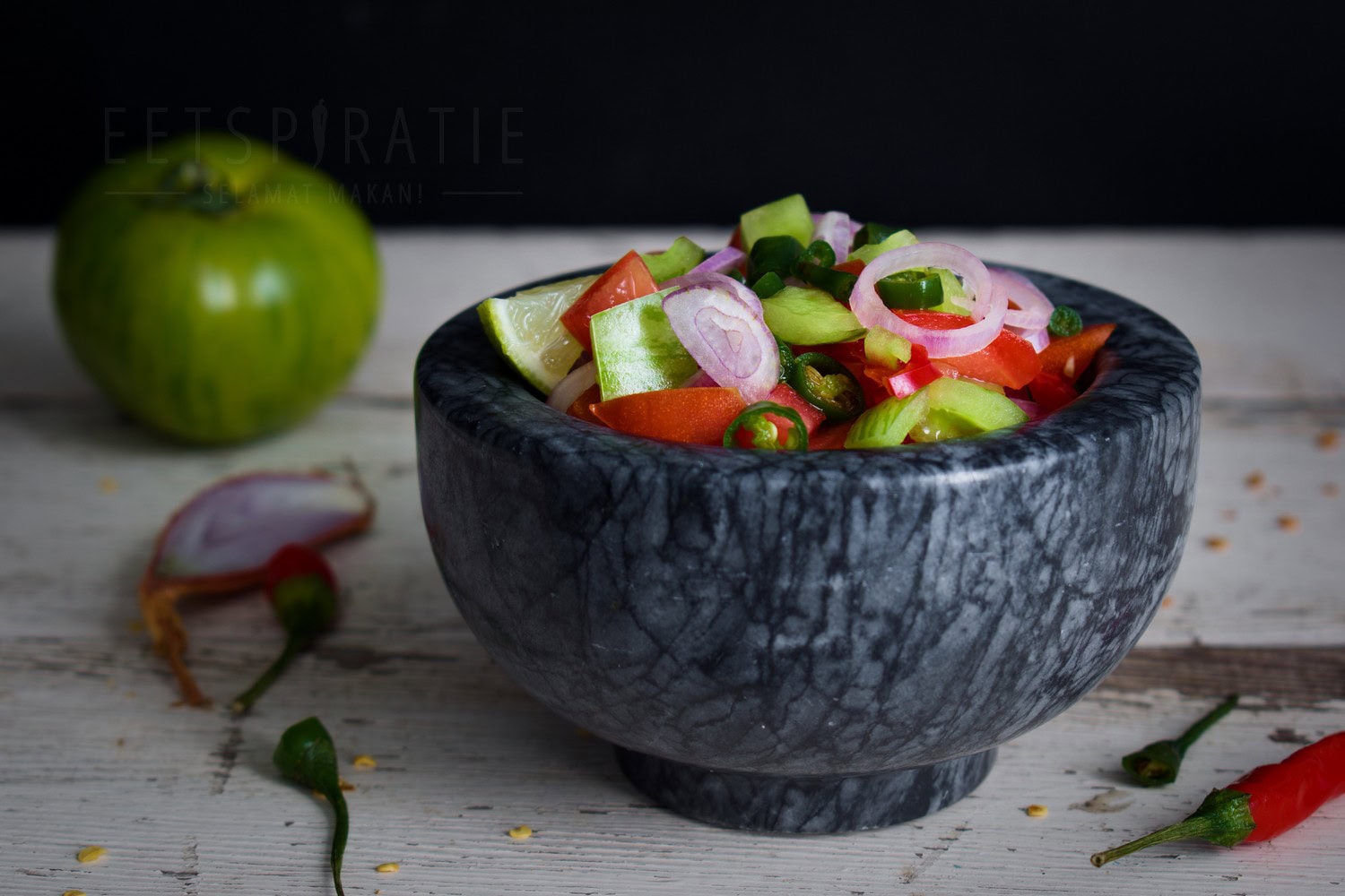 Zo maak je sambal dabu dabu – pittige Indonesische salsa die lekker is bij eigenlijk alles, als je het mij vraagt. Sambal dabu dabu is een condiment dat elk gerecht naar een hoger niveau tilt. Het is kleurrijk, pittig en fris door het vleugje limoensap. Bij het woord sambal denk je wellicht aan een rode pittige saus. Maar sambal dabu dabu is een mengsel van verse rode en groene tomaat, pepertjes en sjalotten, vergelijkbaar met een salsa.